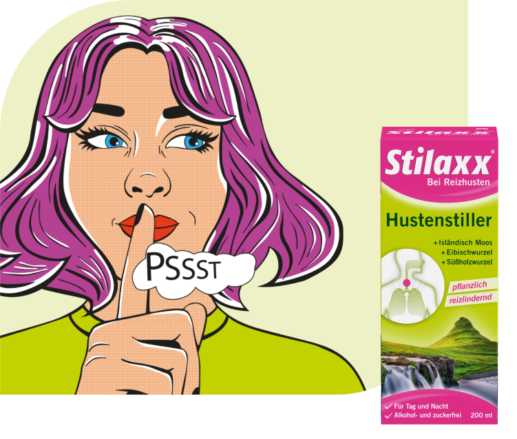 Stilaxx® Hustenstiller enthält als einziger Hustenstiller die 3-fach Kombination der Stilaxx® Formel aus drei reizlindernden Pflanzenextrakten. Darüber hinaus sind Stilaxx® Hustenstiller gut verträglich, pflanzlich, sowie alkoholfrei und zuckerfrei.